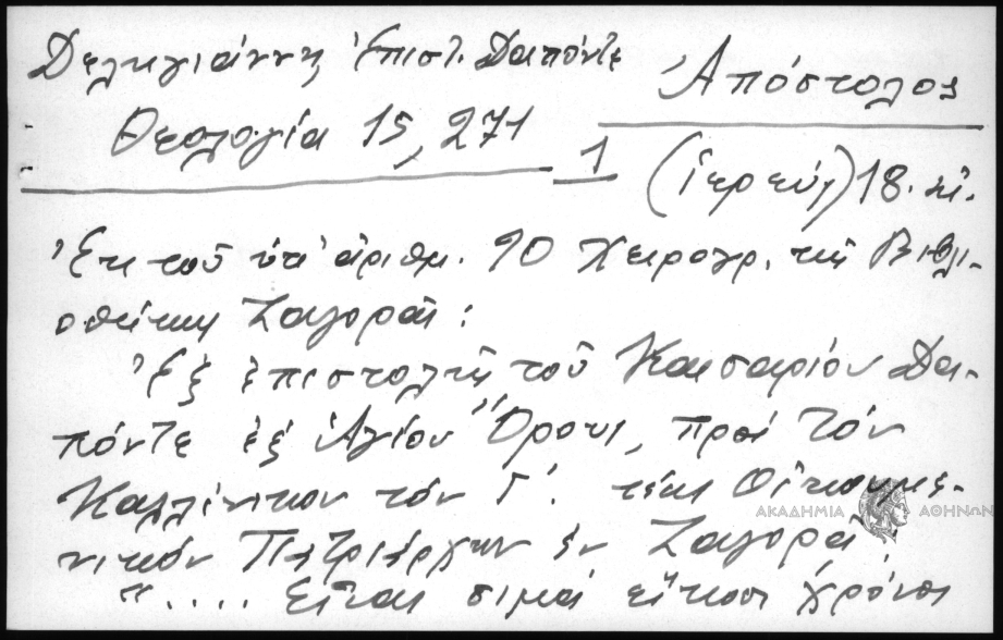 - Προσωπογραφικό και τοπωνυμικό αρχείο (15ος-19ος αι.)