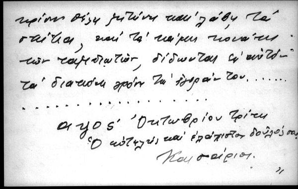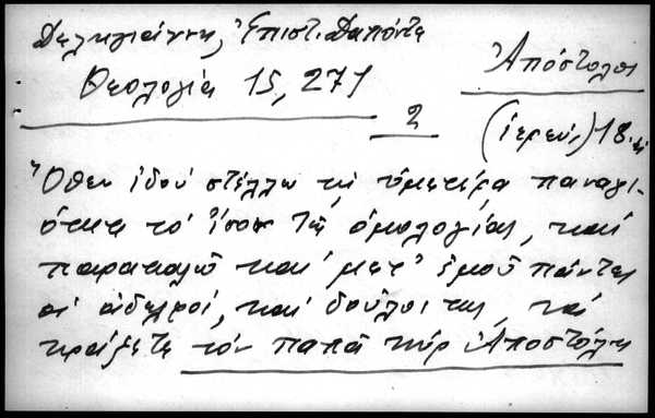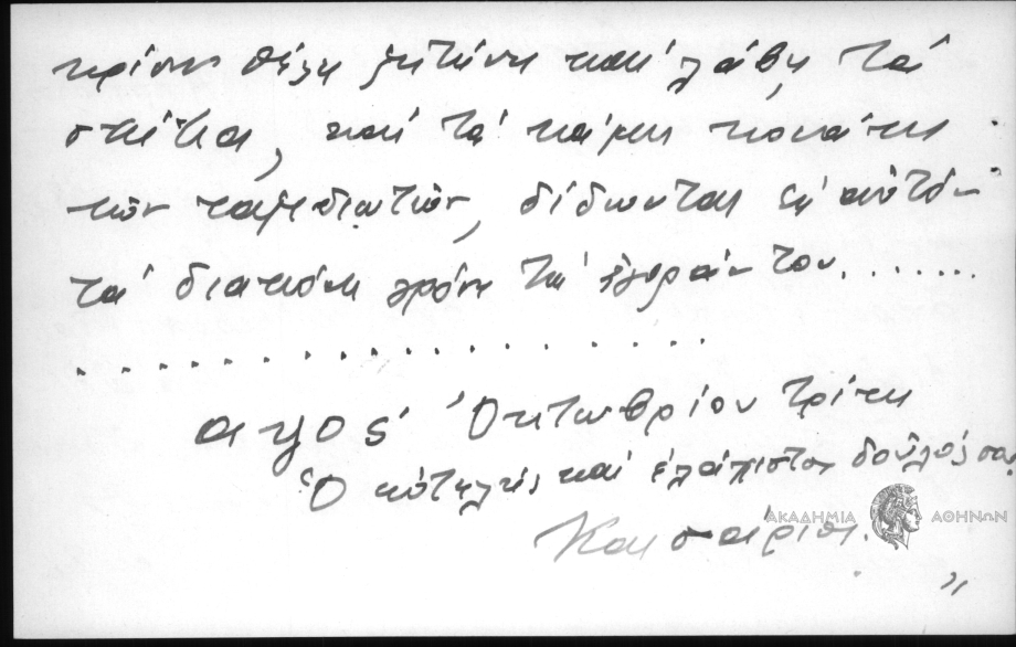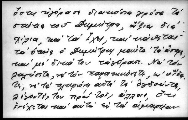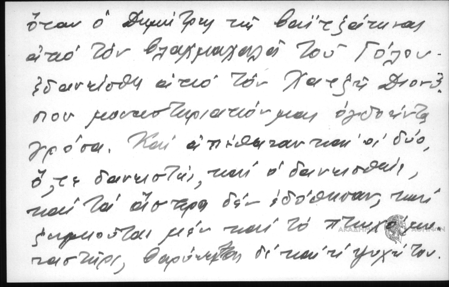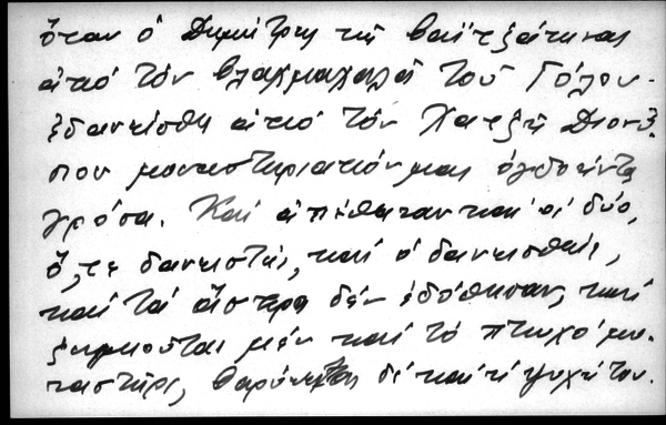 - Εκ τού υπ΄αριθμ. 90 χειρογρ. της Βιβλιοθήκης Ζαγοράς: Εξ επιστολής τού Καισαρίου Δαπόντε εξ Αγίου Όρους, πρός τόν Καλλίνικον τόν Γ΄τέως οικουμενικόν πατριάρχην εν Ζαγορά: "...Είναι σιμά είκοσι χρόνοι / όταν ο Δημήτρης της βαϊτζάτηνας από τόν βλαχμαχαλά του Βόλου εδανείσθη από τόν χατζή Διονύσιον μοναστηριακόν μας ογδοήντα γρόσα. Καί απέθαναν και οι δύο, ό,τε δανειστής, καί δανεισθείς, καί τά άσπρα δεν εδόθησαν, καί ζημιούται μέν καί τό πτωχό μοναστήρι, βαρύνεται δέ και η ψυχή του. / Όθεν ιδού στέλλω τή υμετέρα παναγιότητι τό ίσον της ομολογίας, καί παρακαλώ καί μετ΄εμού πάντες οι αδελφοί, καί δούλοι της, νά κράξετε τόν παπά κύρ Αποστόλη / όστις ηγόρασε διακόσια γρόσα τά σπίτια τού Δημήτρη, άξια διά χίλια, καί τά έχει, καί κάθεται. Τα οποία ο Δημήτρης μαύτα τα άπρα, καί με δικά του ταγόρασε. Να τόν λαλήσετε, να τόν παρακινήσετε, κι οίδατε, να τα πληρώνη αυτά τα ογδοήντα, λέγοντες του πρός τοίς άλλοις, ότι ενέχεται καί αυτός εις τήν αμαρτίαν / άν δέν τά πληρώση, έχων σπίτια, όπου να τά έχη τό μοναστήρι διά τά δάνεια, καί τρόπον τινά αδικεί το μοναστήρι, καί τέλος ότι αν δέ τα δώση θέλει σταλθεί άνθρωπος από το μοναστήρι, αυτού και μή τήν κρίσην θέλει ζητήσει καί λάβη τά σπίτια, καί τά κάμη κονάκι τών ταξιδιωτών, δίδωντας εις αυτό τά διακόσια γρόσα την αγοράν του........................................ αψοστ΄Οκτωβρίου Τρίτη Ο ευτελής και ελάχιστος δούλος σου Καισάριος