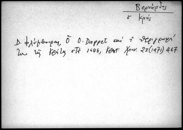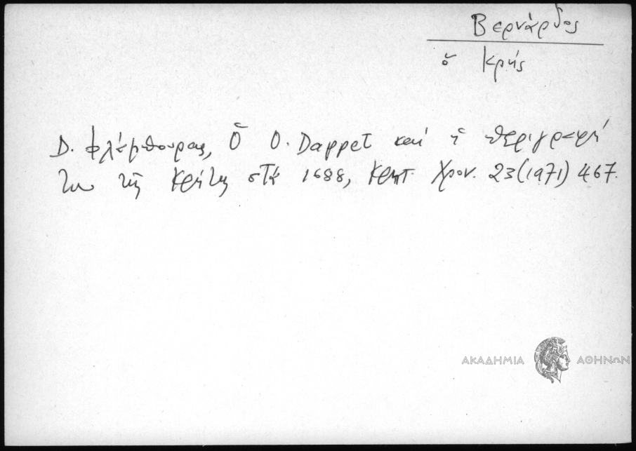 - Δ. Φλάμπουρας, Ο O. Dapper και η περιγραφή του της Κρήτης στα 1688, Κρητ. Χρον. 23 (1971) 467.