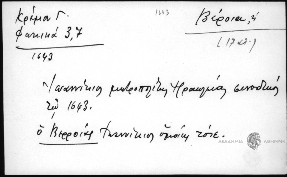 - Προσωπογραφικό και τοπωνυμικό αρχείο (15ος-19ος αι.)