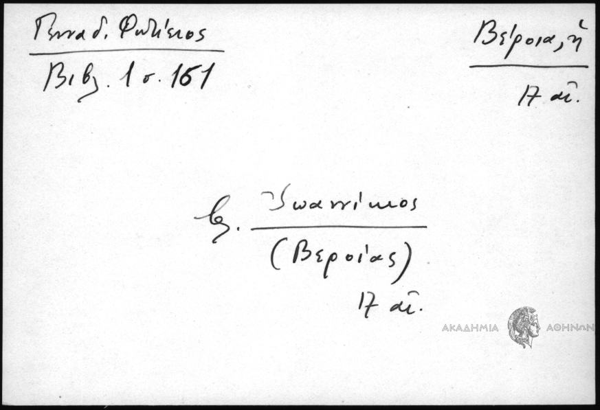 - βλ. Ιωαννίκιος (Βεροίας) 17 αι.