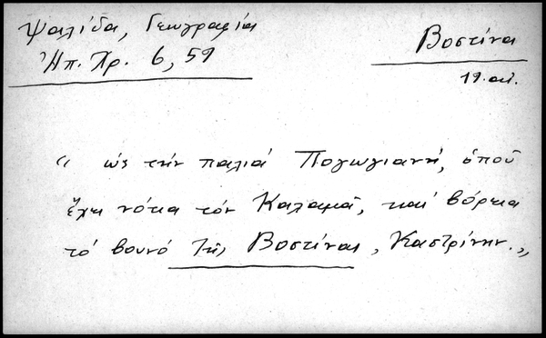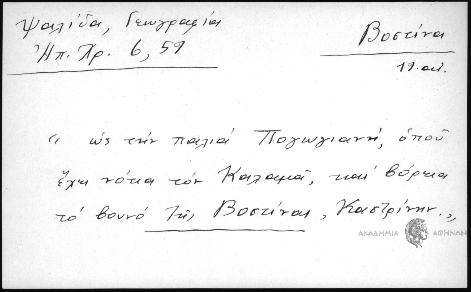 - "Ως την παλιά Πογωγιανή, όπου έχει νότια τον Καλαμά, και βόρεια το βουνό της Βοστίνας, Καστρίνην."