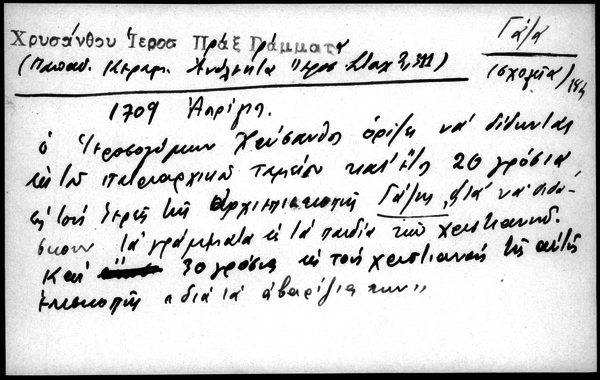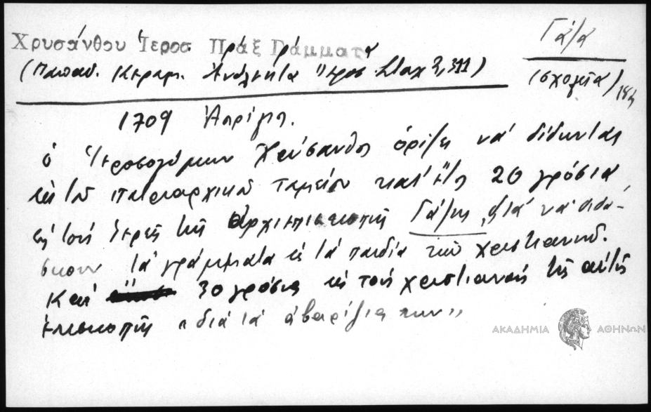 Χρυσάνθου Πατριάρχου Ιεροσολύμων πράξεις και γράμματα (1709-1729)