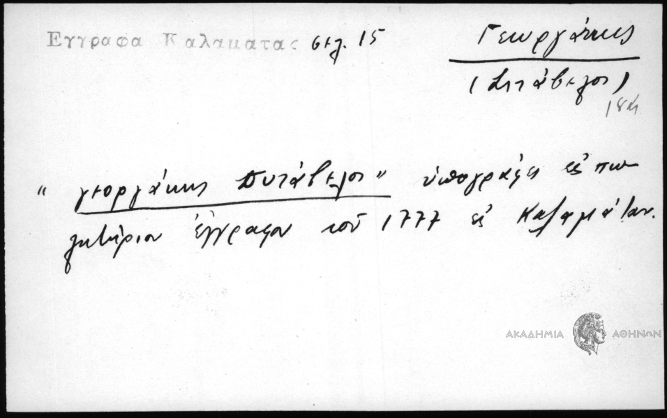 - "γεοργάκης Σιτάβελος" υπογράφει εις πωλητήριον έγγραφον του 1777 εις Καλαμάταν