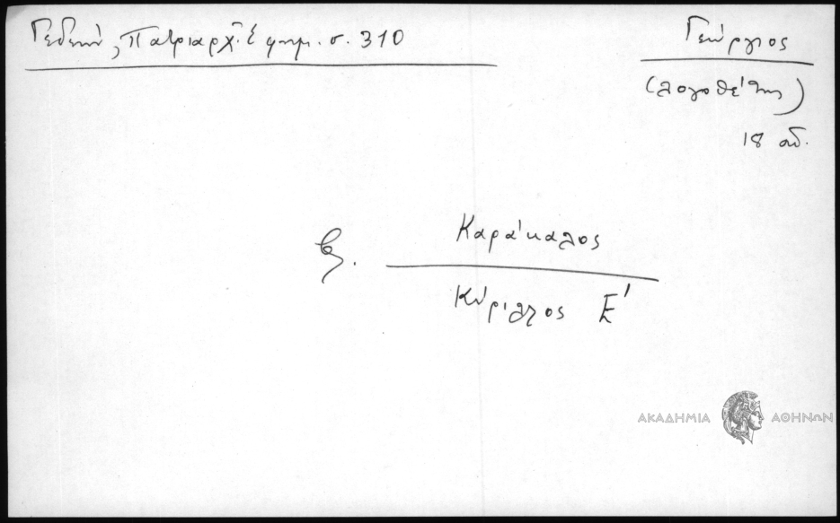 - Προσωπογραφικό και τοπωνυμικό αρχείο (15ος-19ος αι.)