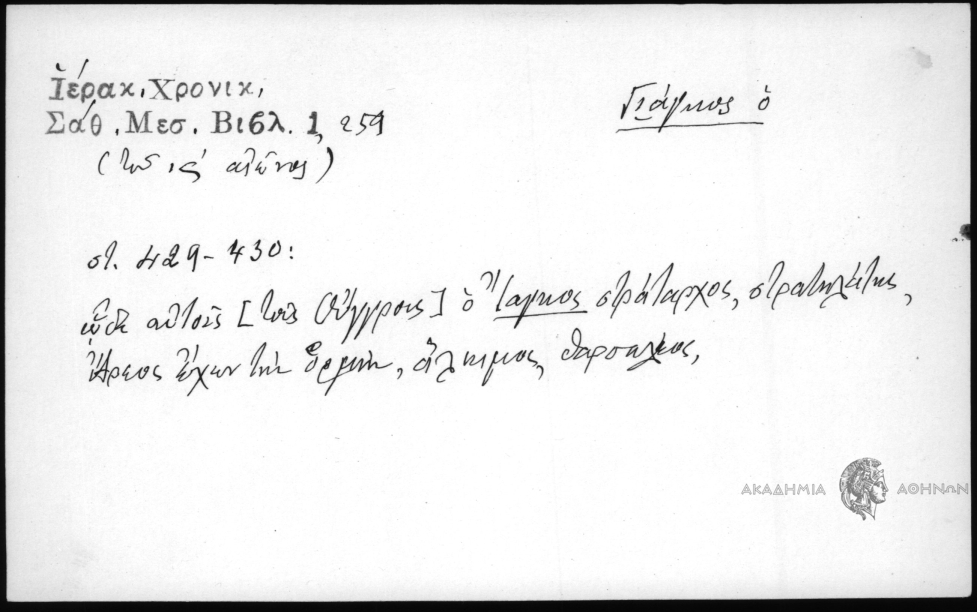 - Προσωπογραφικό και τοπωνυμικό αρχείο (15ος-19ος αι.)