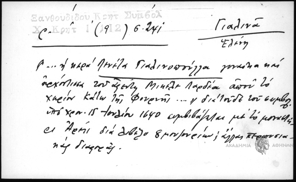 - "... η κερά Λενέτα Γιαλινοπούλλα γυναίκα και αρχόντισσα του αφέντη Μικέλε Λαρδέα απού το χωρίον Κάτω της Φουρνής..." δια τούδε του συμβολ. υπό χρον. 15 Ιουλίου 1640 συμβιβάζεται με το μοναστήρι Αρέτι δια λιβελο 8 μουζουρίων και άλλας περιουσιακάς διαφοράς.
