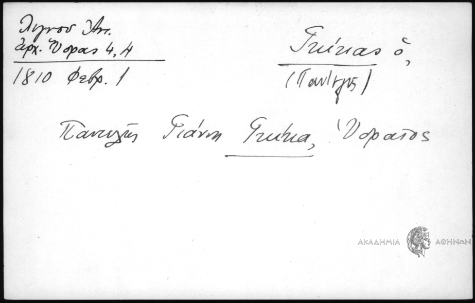 - 1810 Φεβρ. 1 Παντελής Γιάννη Γκίκα, Υδραίος