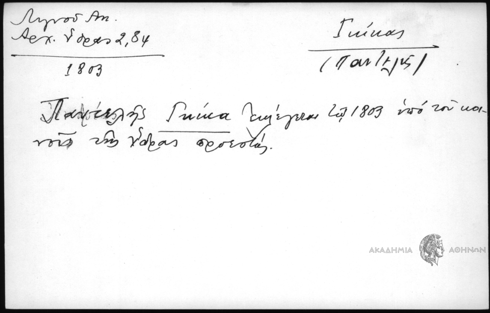 - Προσωπογραφικό και τοπωνυμικό αρχείο (15ος-19ος αι.)