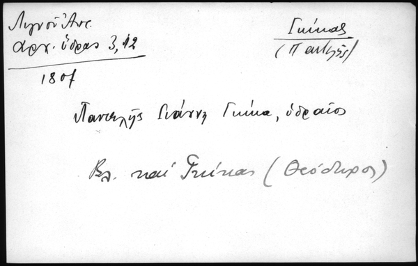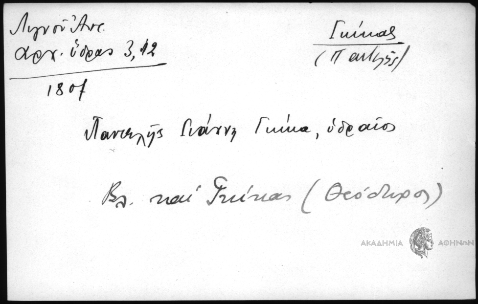 - 1807 Παντελής Γιάννη Γκίκα, υδραίος Βλ. και Γκίκας (Θεόδωρος)