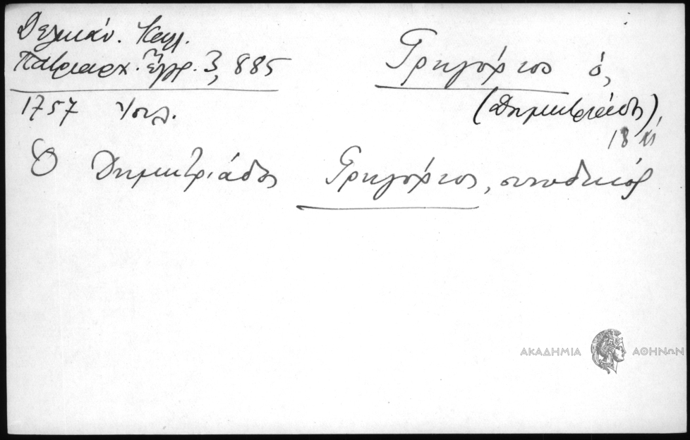 - Προσωπογραφικό και τοπωνυμικό αρχείο (15ος-19ος αι.)