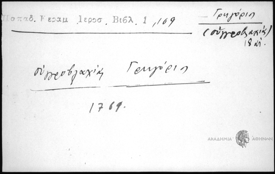 - Ουγγροβλαχίας Γρηγόριος 1769