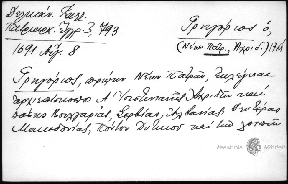 - Προσωπογραφικό και τοπωνυμικό αρχείο (15ος-19ος αι.)