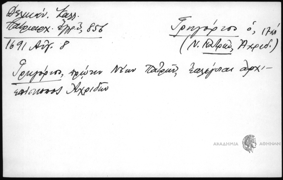 - Γρηγόριος πρώην Νέων Πατρών εκλέγεται αρχιεπίσκοπος Αχριδών