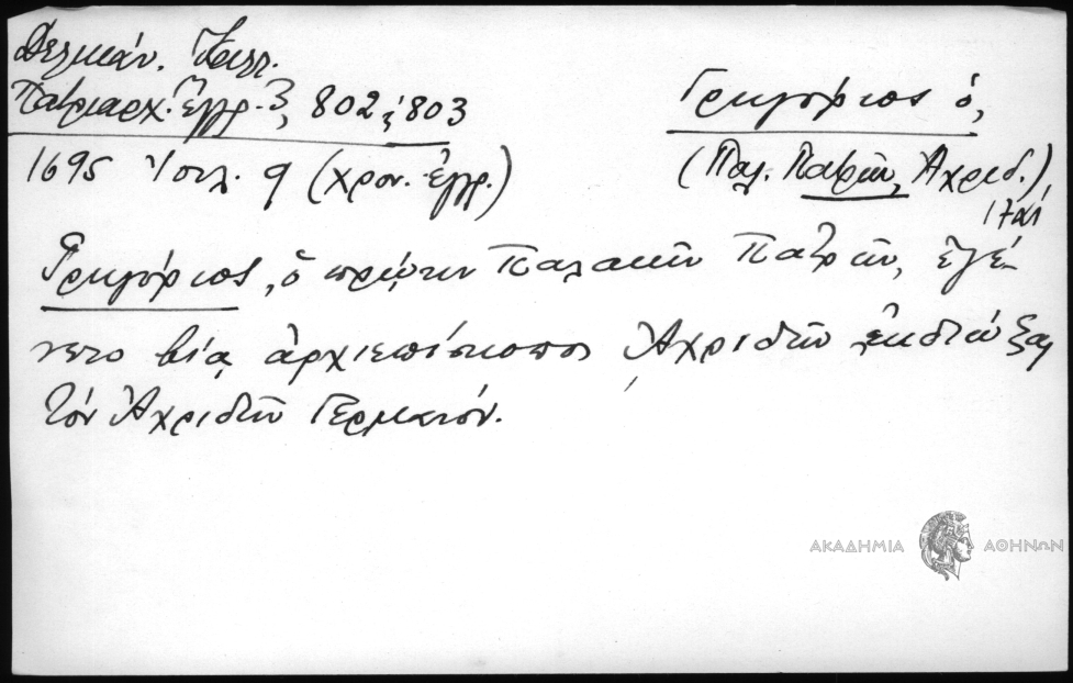 - Προσωπογραφικό και τοπωνυμικό αρχείο (15ος-19ος αι.)