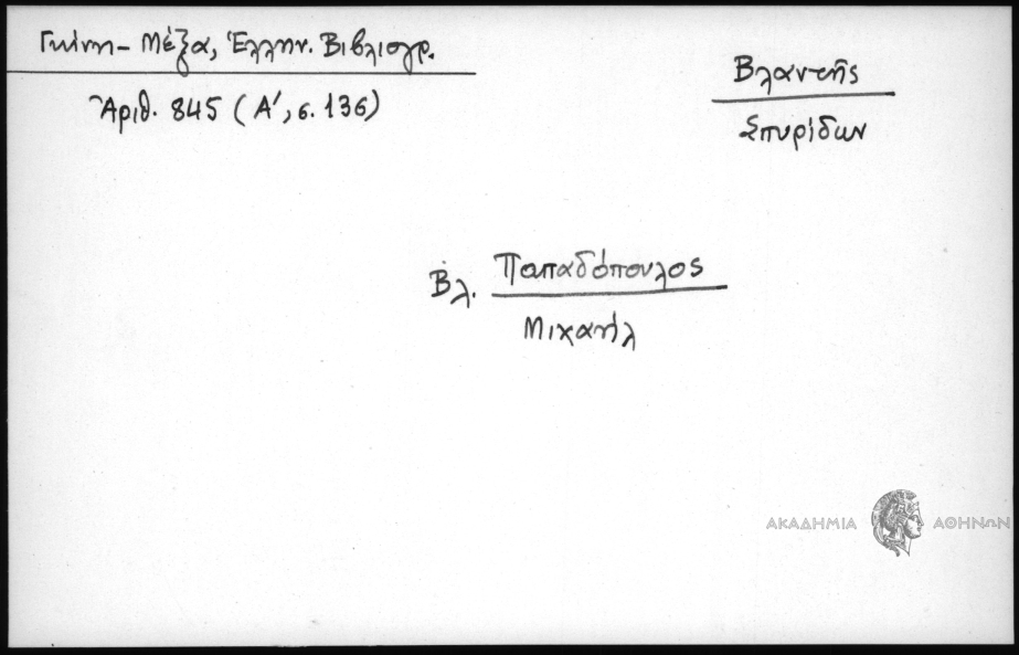 Ελληνική Βιβλιογραφία 1800-1863. Αναγραφή των κατά την χρονικήν ταύτην περίοδον οπουδήποτε ελληνιστί εκδοθέντων βιβλίων και εντύπων εν γένει μετά πίνακος των εφημερίδων και περιοδικών της περιόδου ταύτης