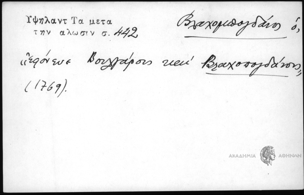 - "εφόνευε Βουλγάρους και Βλαχομπογδάνους" (1769)