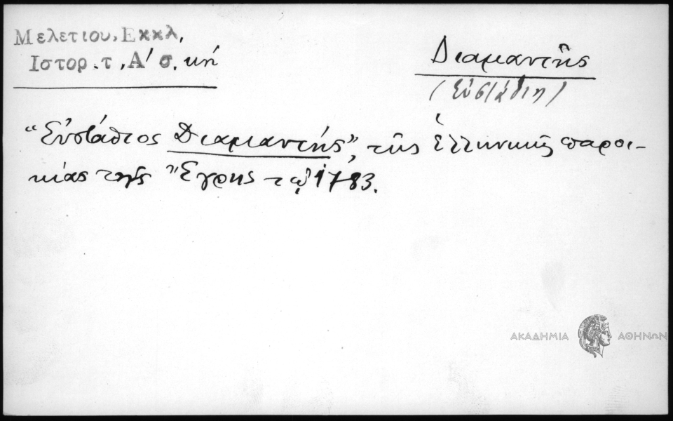 - "Ευστάθιος Διαμαντής" της Ελληνικής παροικίας της Έγρης τω 1783.