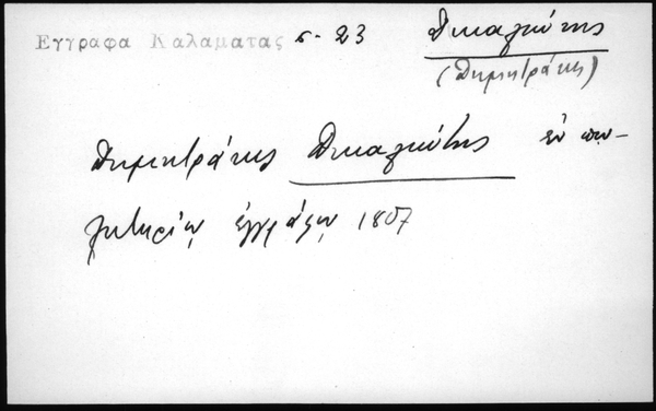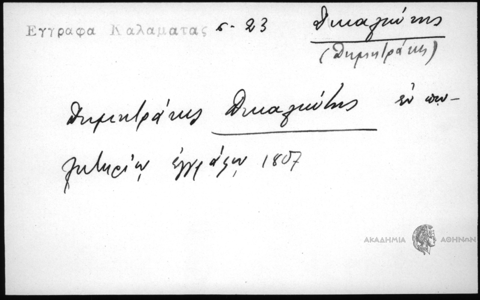- Δημητράκις Δικαλιώτης εν πωλητηρίω εγγράφω 1807.