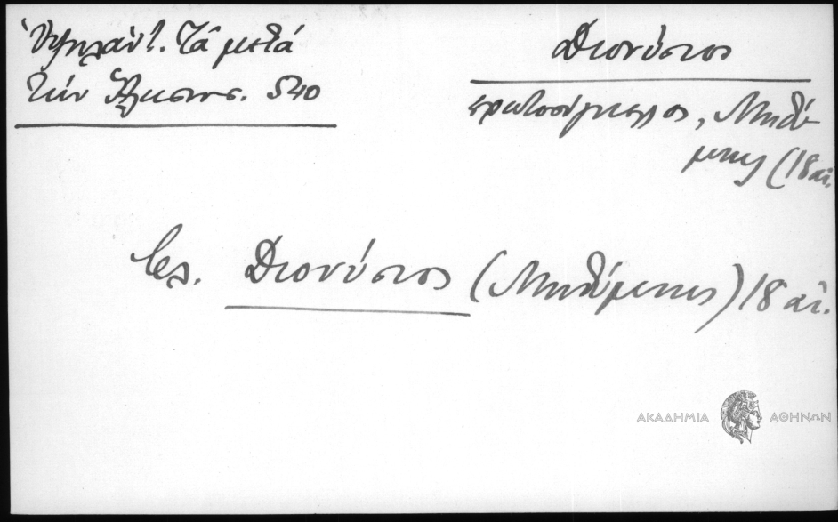 - βλ. Διονύσιος (Μηθύμνης) 18 αι.