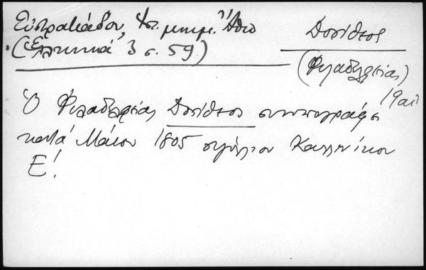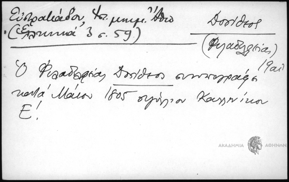 - Ο Φιλαδελφείας Δοσίθεος συνυπογράφει κατά Μάιον 1805 σιγίλλιον Καλλινίκου Ε΄.