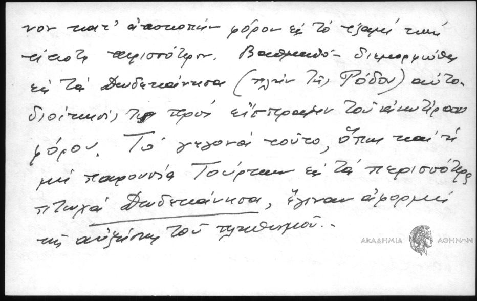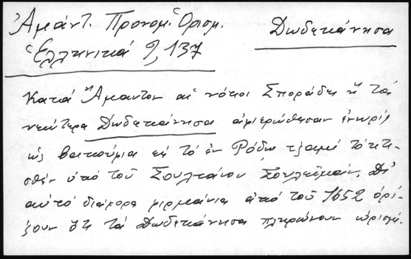 - Κατά Άμαντον αι νότιοι Σποράδες ή τα νεώτερα Δωδεκάνησα αφιερώθησαν ενωρίς ως βακούφια εις το εν Ρόδω τζαμί το κτισθέν υπό του Σουλτάνου Σουλεϊμάν. Δι' αυτό διάφορα φιρμάνια από του 1652 ορίζουν ότι τα Δωδεκάνησα πληρώνουν ωρισμένον κατ' αποκοπήν φόρον εις το τζαμί και τίποτε περισσότερον. Βαθμαδόν[?] διεμορφώθη εις τα Δωδεκάνησα (πλην της Ρόδου) αυτοδιοίκησίς τις προς είσπραξιν του ανωτέρω φόρου. Το γεγονά τούτο, όπως και η μη παρουσία Τούρκων εις τα περισσότερα πτωχά Δωδεκάνησα, έγιναν αφορμή εης αυξήσεως του πληθυσμού.