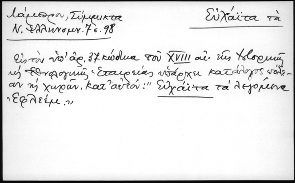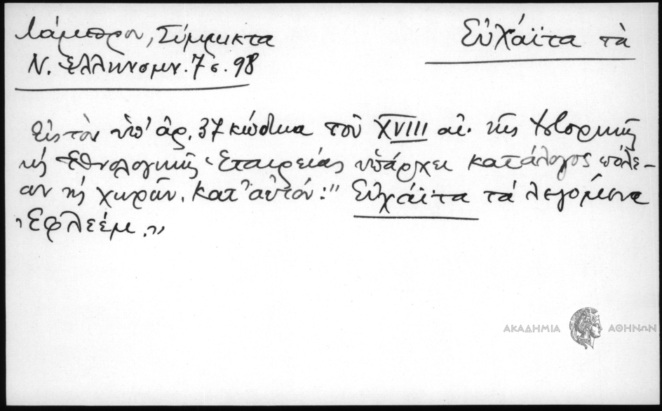 - Εις τον υπ' αρ. 37 κώδικα του XVIII αι. της ιστορικής κ' Εθνολογικής Εταιρείας υπάρχει κατάλογος πόλεων ης χωρών. Κατ' αυτόν: "Ευχάϊτα τα λεγόμενα Εφλεέμ."