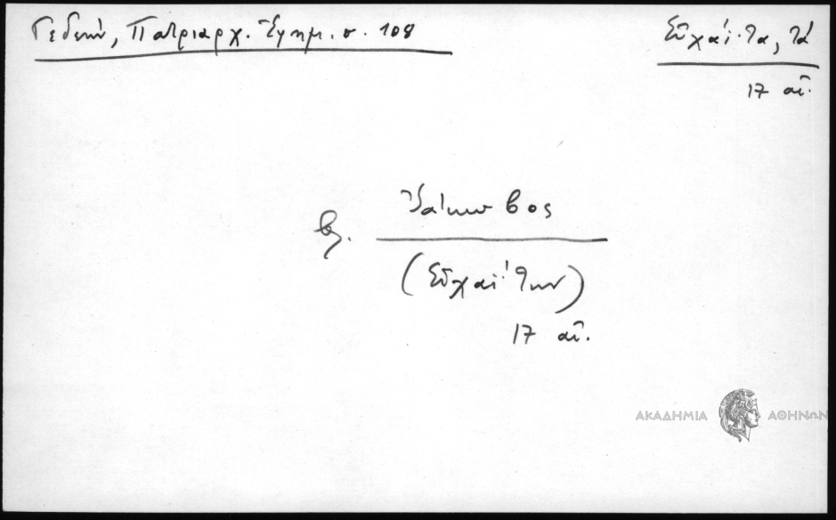- Προσωπογραφικό και τοπωνυμικό αρχείο (15ος-19ος αι.)