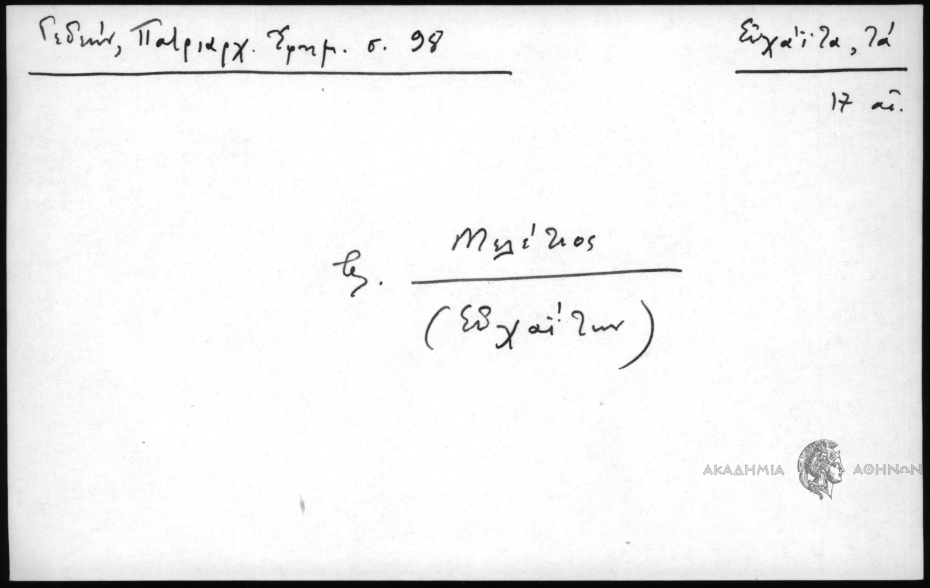 - Προσωπογραφικό και τοπωνυμικό αρχείο (15ος-19ος αι.)