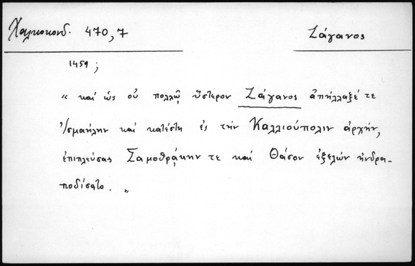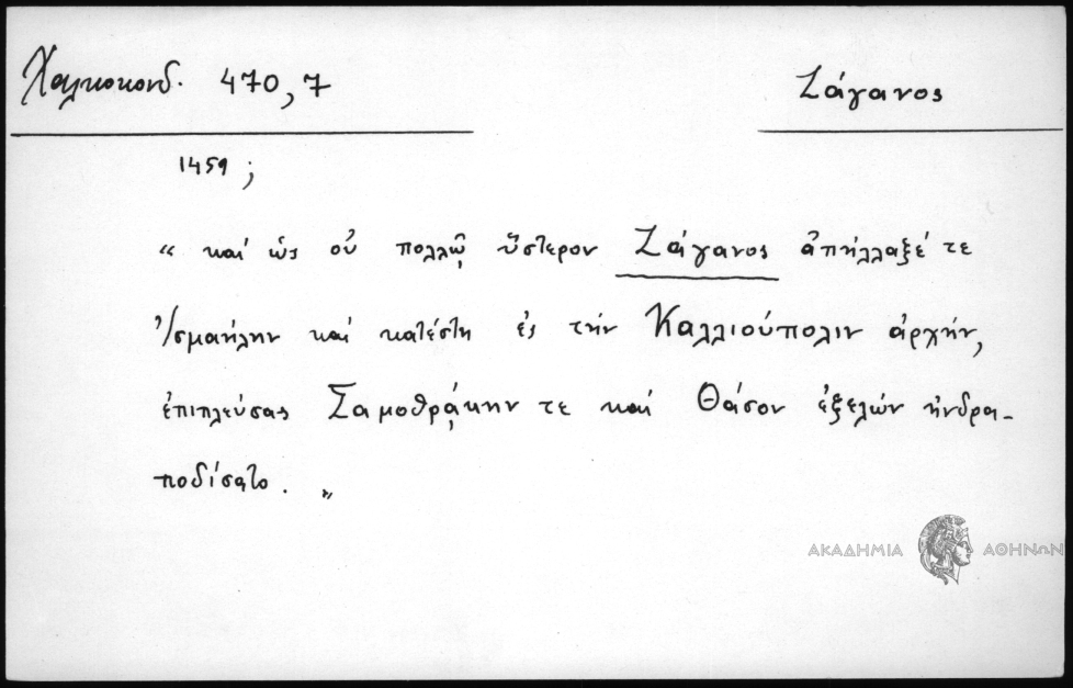 - «και ως ου πολλώ ύστερον Ζάγανος απήλλαξε τε Ισμαήλην και κατέστη ες την Καλλιούπολιν αρχήν, επιπλεύσας Σαμοθράκην τε και Θάσον εξελών ηνδραποδίσατο»