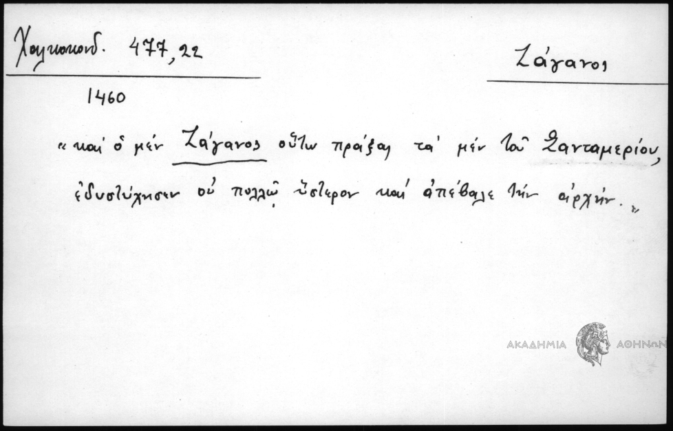 - «και ο μεν Ζάγανος ούτω πράξας τα μεν του Σανταμερίου, εδυστύχησεν ου πολλώ ύστερον και απέβαλε την αρχήν.»