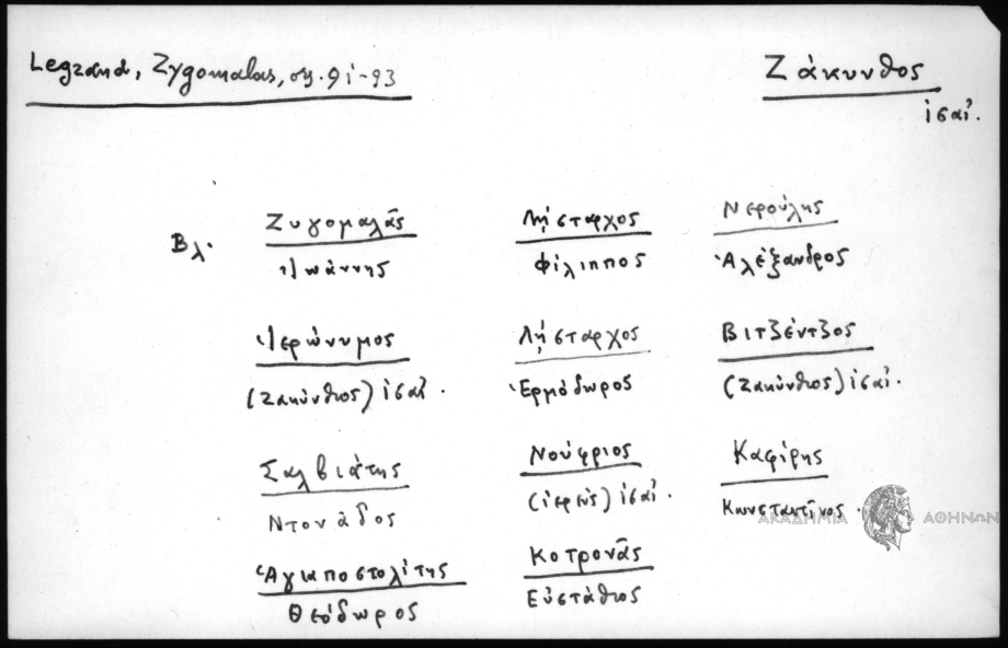 - Βλ. Ζυγομαλάς Ιωάννης Λήσταρχος Φίλιππος Νερούρης Αλέξανδρος Ιερώνυμος (Ζακύνθιος) 16 αι. Λήσταρχος Ερμόδωρος Βιτζέντζος Ζακύνθιος 16 αι. Σαλβιάτης Ντονάδος Νούφριος (ιερεύς) 16 αι. Καφίρης Κωνσταντίνος Αγιαποστολίτης Θεόδωρος Κοτρονάς Ευστάθιος