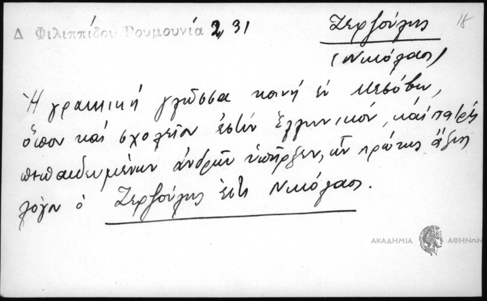 - Η γραικική γλώσσα κοινή εν Μεσόβω, όπου και σχολέιον εστίν Ελληνικόν, και πατρίς πεπαιδευμένων ανδρών υπήρξεν, ων πρώτης άξιος λόγου ο Ζερζούλης έστι Νικόλαος.