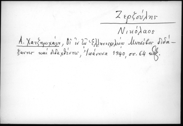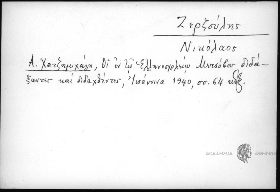 - Α. Χατζημιχάλη, Οι εν Τω Ελληνοσχολείω Μετσόβου διδάξαντες και διδαχθέντες, Ιωάννινα 1940, σσ. 64 κτξ.