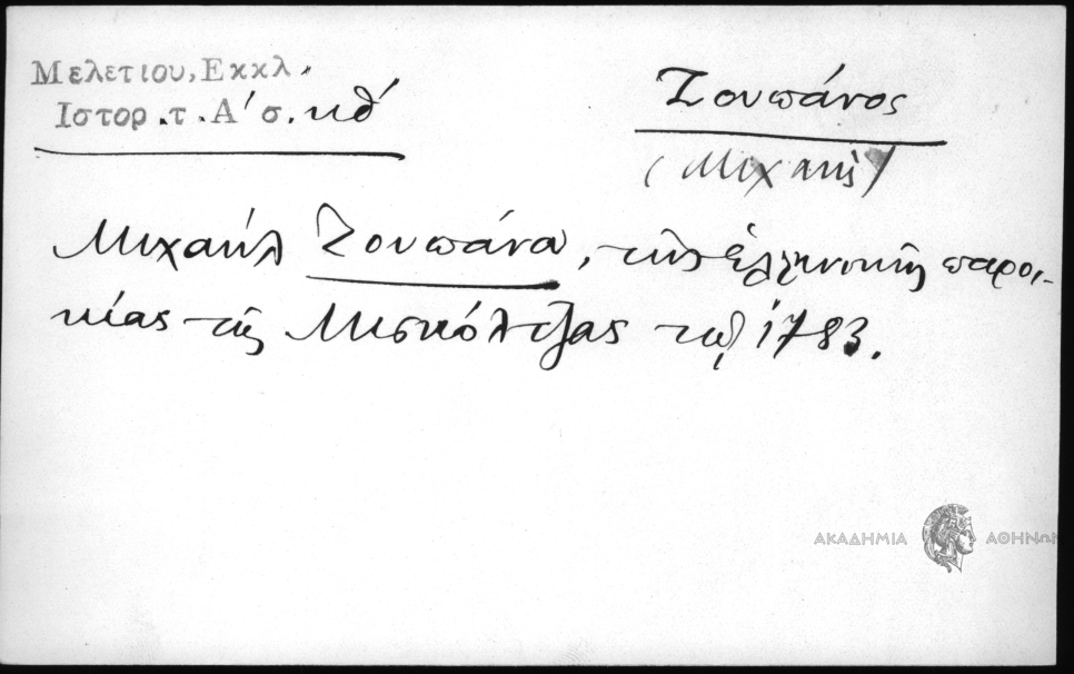 - Μιχαήλ Ζουπάνου, της ελληνικής παροικίας της Μισκόλτζας τω 1783