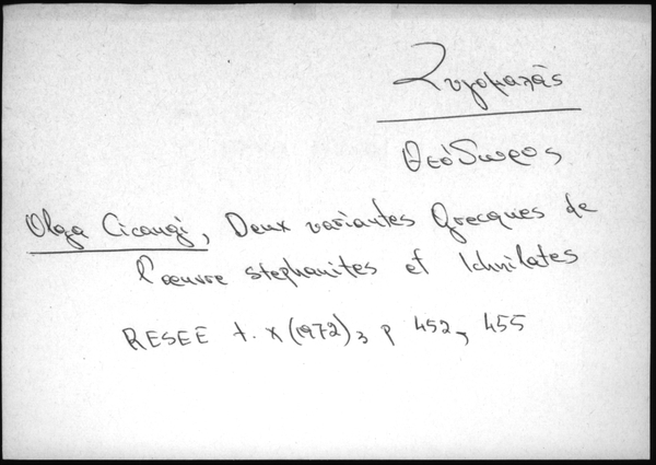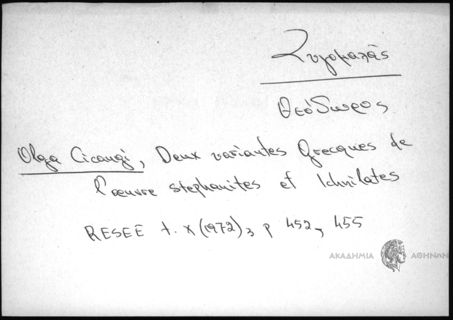 - Olga Cicangi, Deux variantes Grecques de l' oeuvre Stephanites et Ichnilates RESEE t.x (1972), p 452, 455