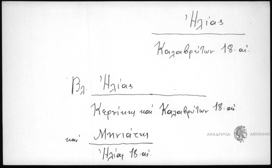 - Βλ. Ηλίας Κερνίκης καί Καλαβρύτων 18. αι. καί Μηνιάτης Ηλίας 18 αι.