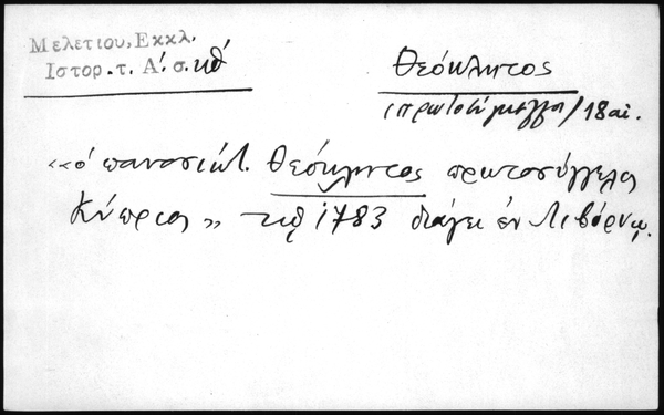- "ο πανοσιώτ. Θεόκλητος πρωτοσύγγελος Κύπριος" τω 1783 διάγει εν Λιβόρνω.