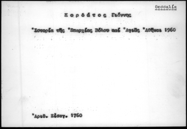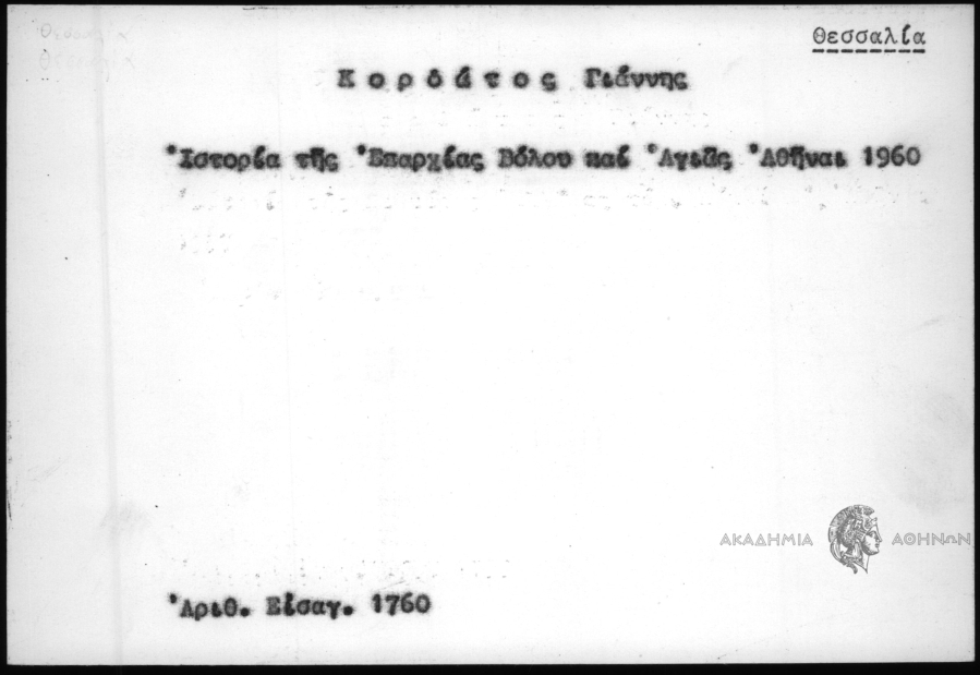 - Κορδάτος Γιάννης Ιστορία της Επαρχίας Βόλου και Αγιάς Αθήναι 1960