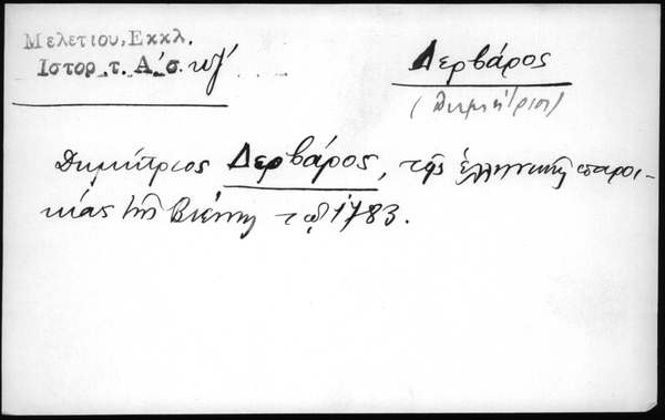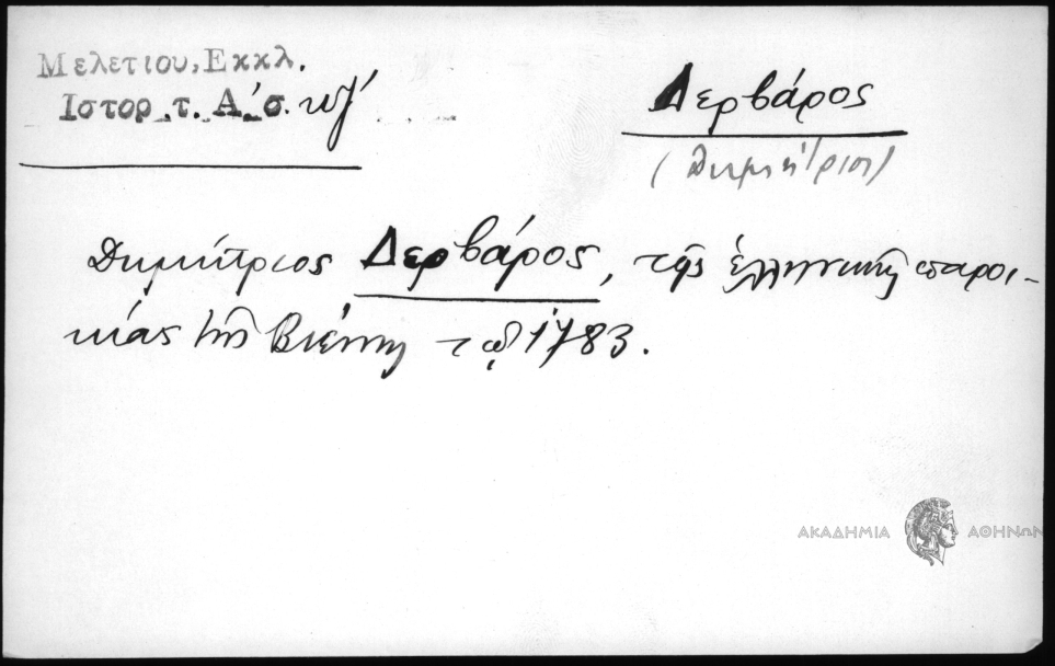 - Δημήτριος Δερβάρος, της ελληνικής παροικίας της Βιέννης τω 1783.