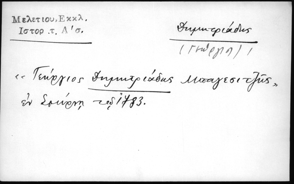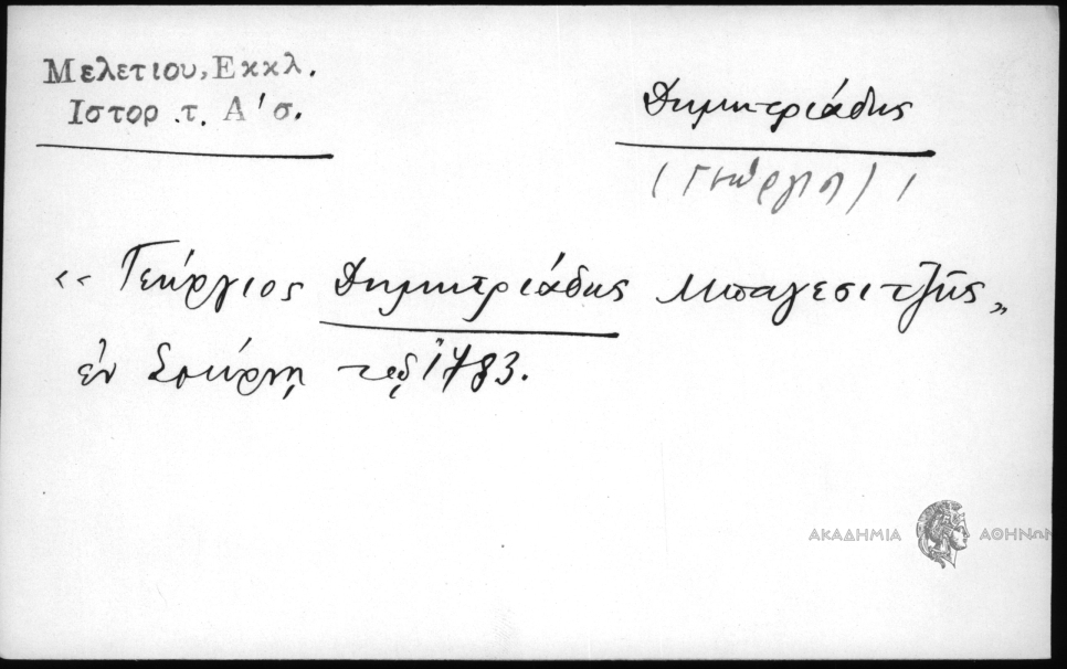 - "Γεώργιος Δημητριάδης Μπαγεσιτζής" εν Σμύρνη τω 1783.
