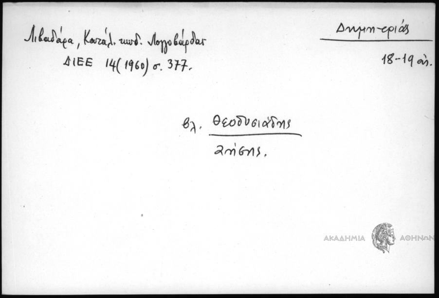 - Προσωπογραφικό και τοπωνυμικό αρχείο (15ος-19ος αι.)