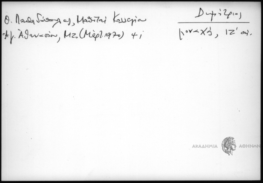 - Προσωπογραφικό και τοπωνυμικό αρχείο (15ος-19ος αι.)