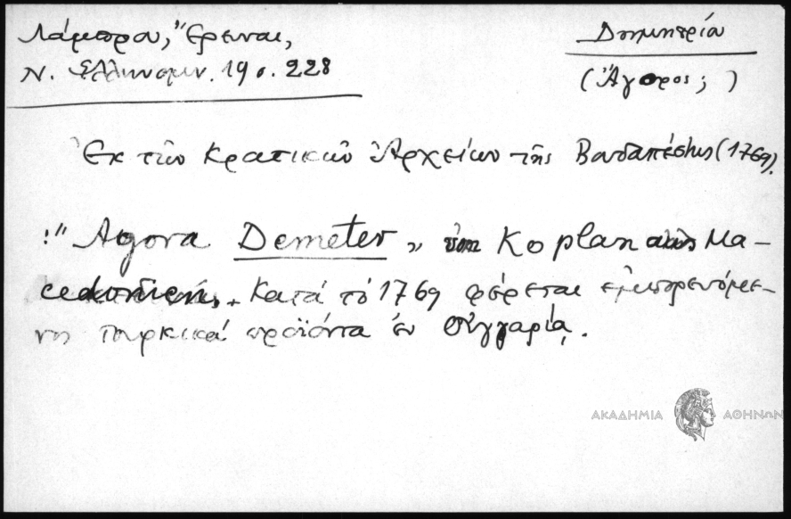 - Δημητρίου , (Άγορος ;)