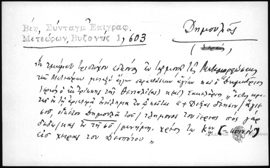 Σύνταγμα Επιγραφικών Μνημείων Μετεώρων και της πέριξ χώρας μετά σχετικών Αρχαιολογημάτων