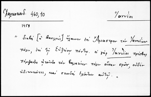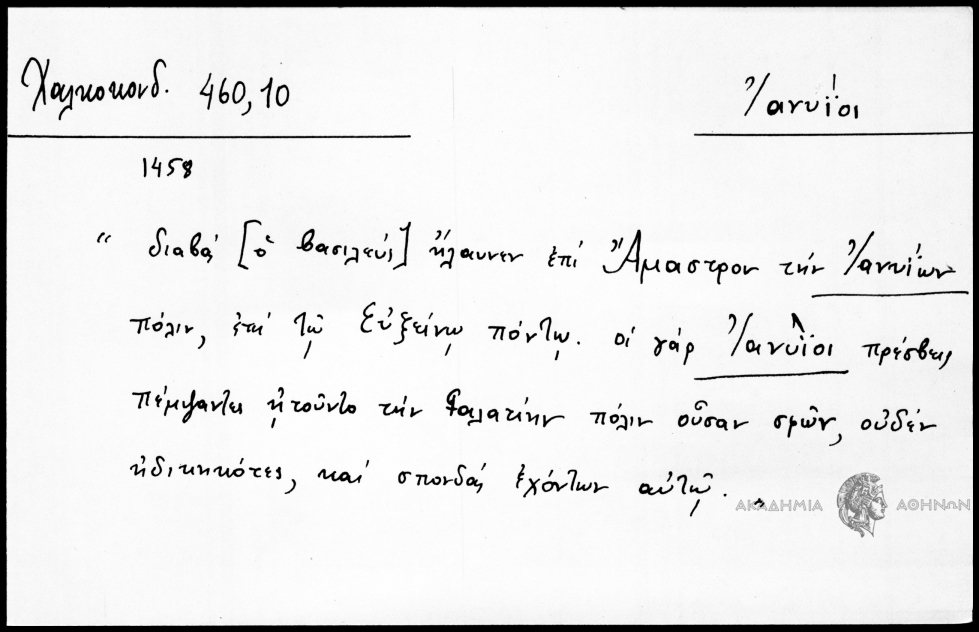- "διαβάς [ο βασιλεύς] ήλαυνεν επί Άμαστρον την Ιανυΐων πόλιν, επί τω Ευξείνω πόντω. Οι γαρ Ιανυΐοι πρέσβεις πέμψαντες ητούντο τη Γαλατίην πόλιν ούσαν σφών, ουδέν ηδικηκότες, και σπονδάς εχόντων αυτώ."