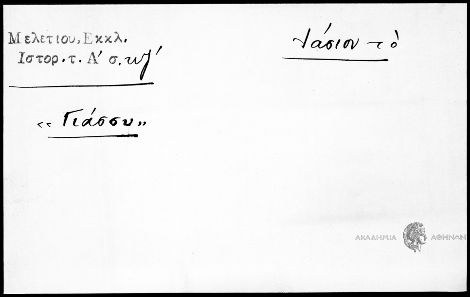 - Προσωπογραφικό και τοπωνυμικό αρχείο (15ος-19ος αι.)