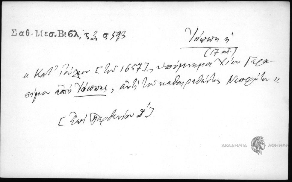 - Προσωπογραφικό και τοπωνυμικό αρχείο (15ος-19ος αι.)