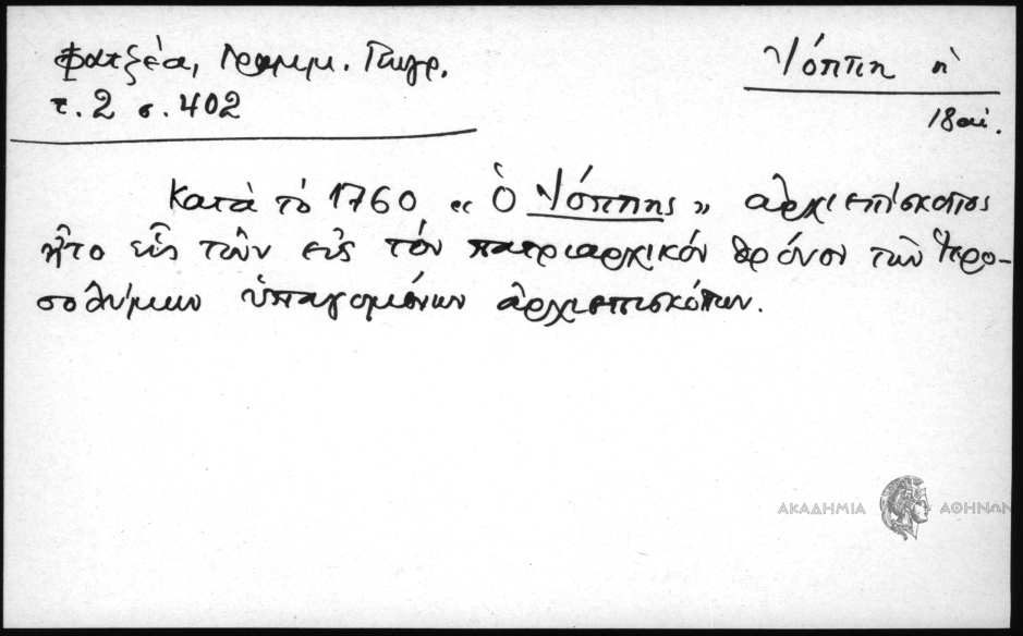 - Προσωπογραφικό και τοπωνυμικό αρχείο (15ος-19ος αι.)