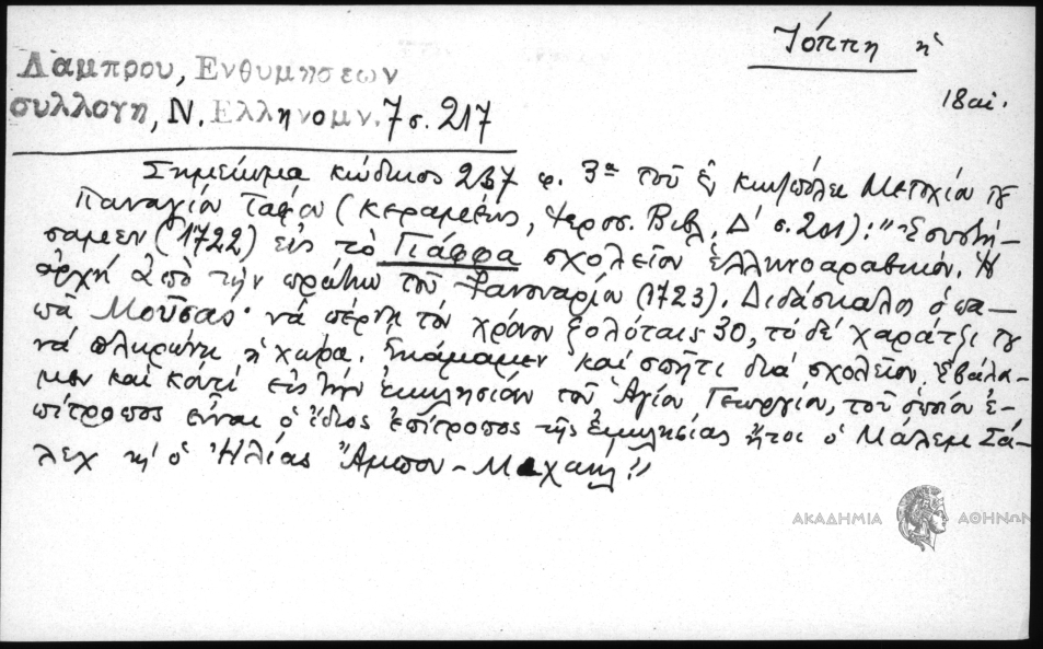 - Προσωπογραφικό και τοπωνυμικό αρχείο (15ος-19ος αι.)